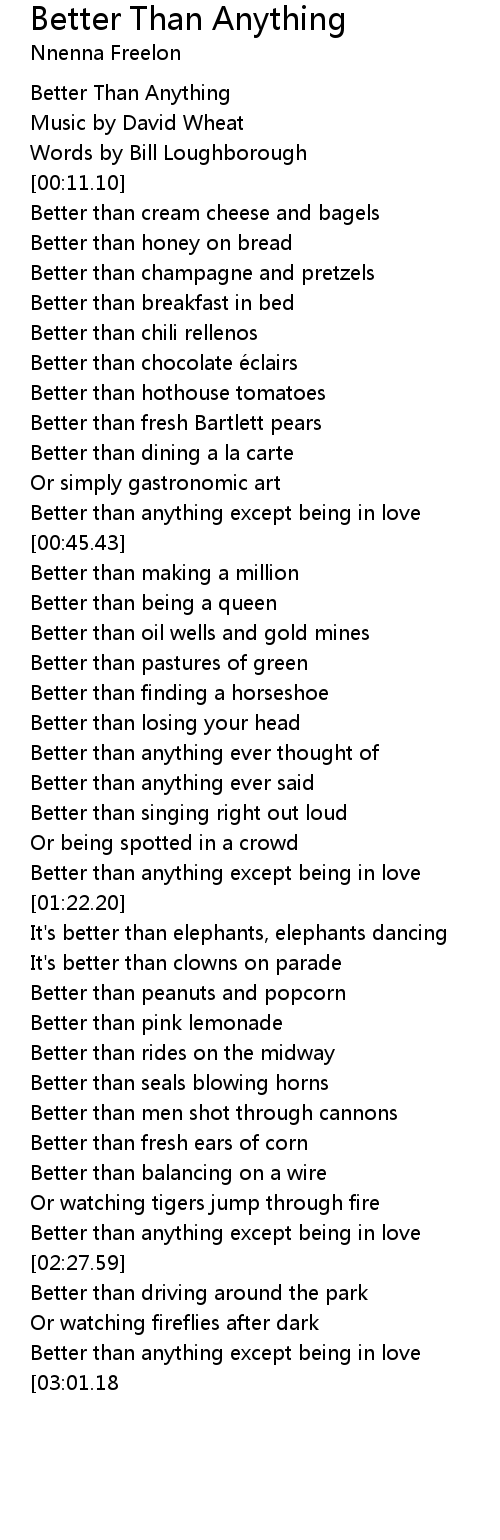 | [00:02.22] | Better Than Anything |