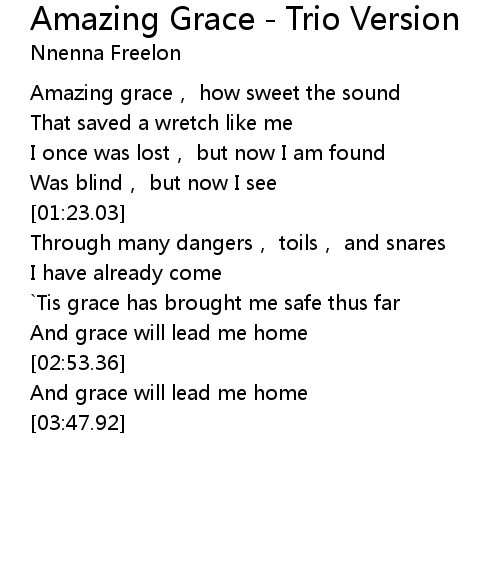 | [00:28.01] | Amazing grace, how sweet the sound |