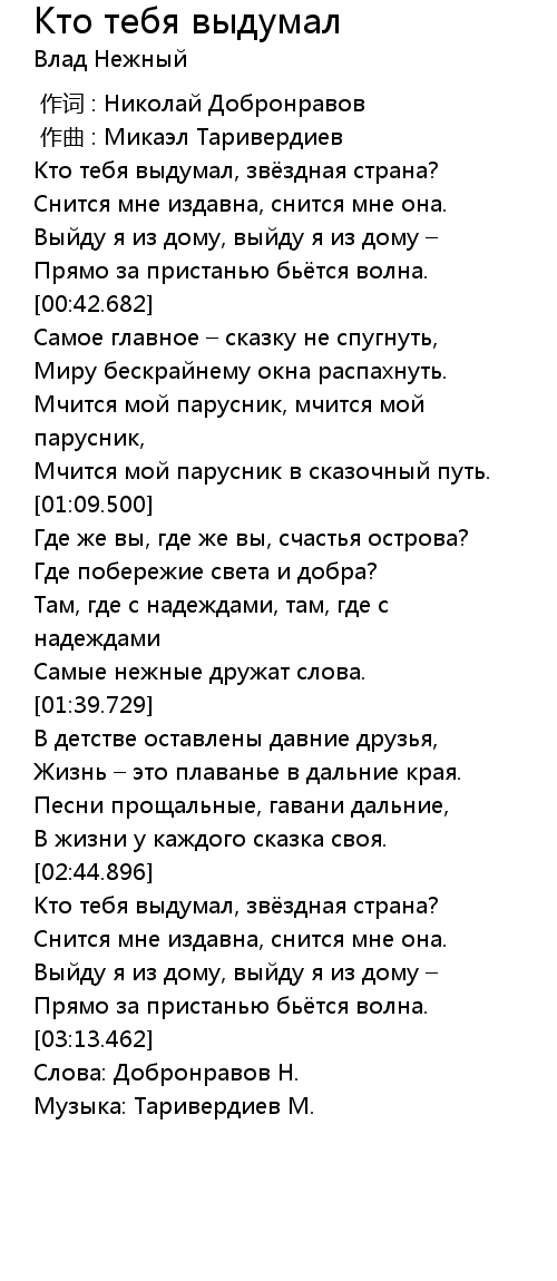 [00:00.000] 作词 : Николай Добронравов