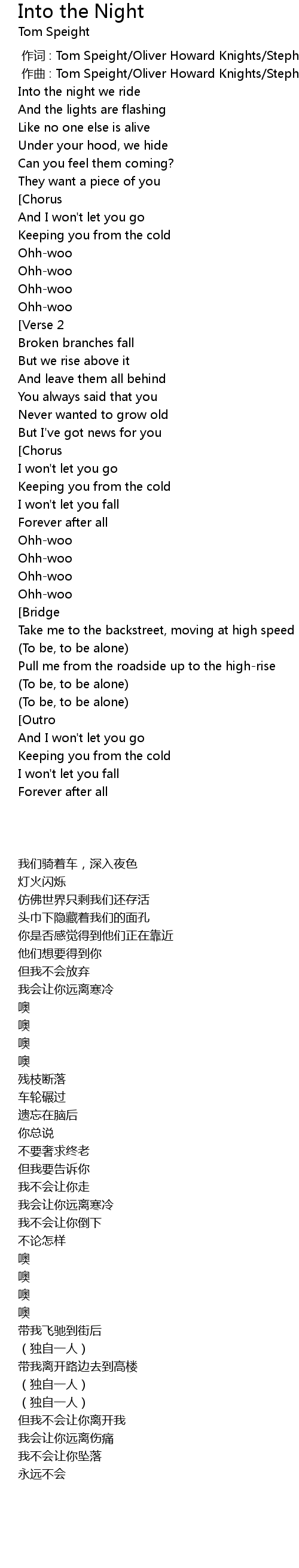 | [00:00.000] | 作词 : Tom Speight/Oliver Howard Knights/Stephen Gale Paridjanian |