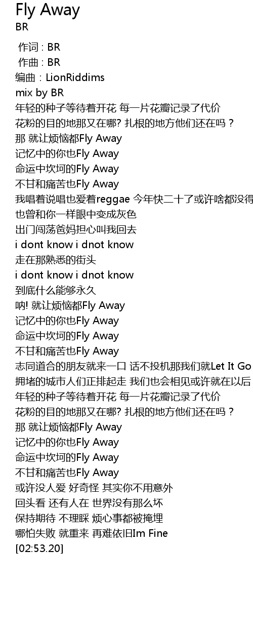 | [02:23.17] | 不甘和痛苦也Fly Away |
