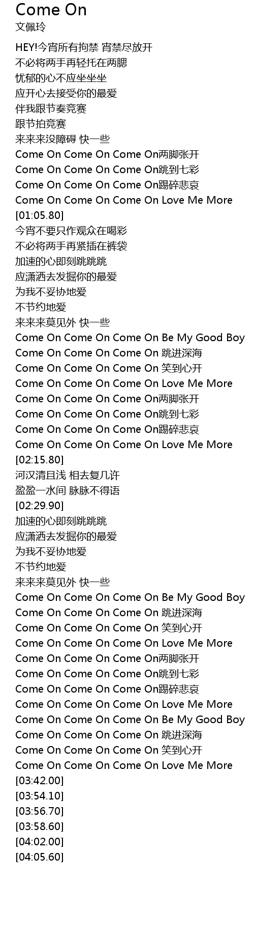 | [03:04.30] | Come On Come On Come On Love Me More |