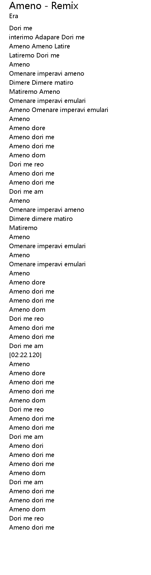 | [03:00.700] | Ameno dore |