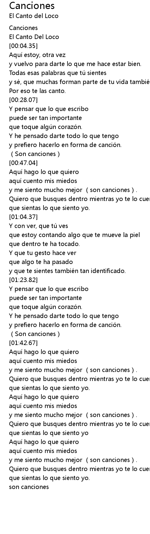 | [00:01.74] | El Canto Del Loco |