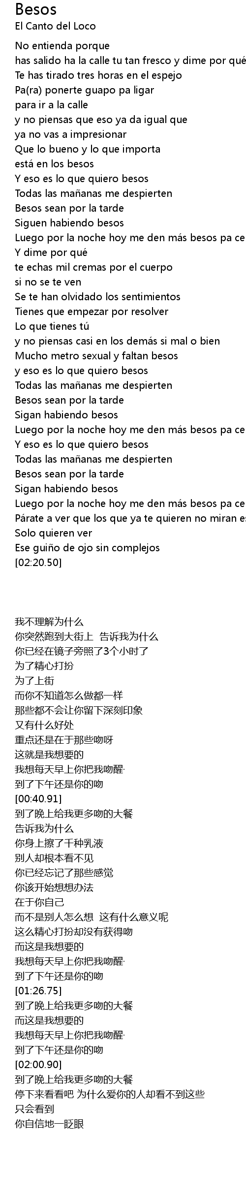 | [02:03.70] | Luego por la noche hoy me den ma s besos pa cenar |