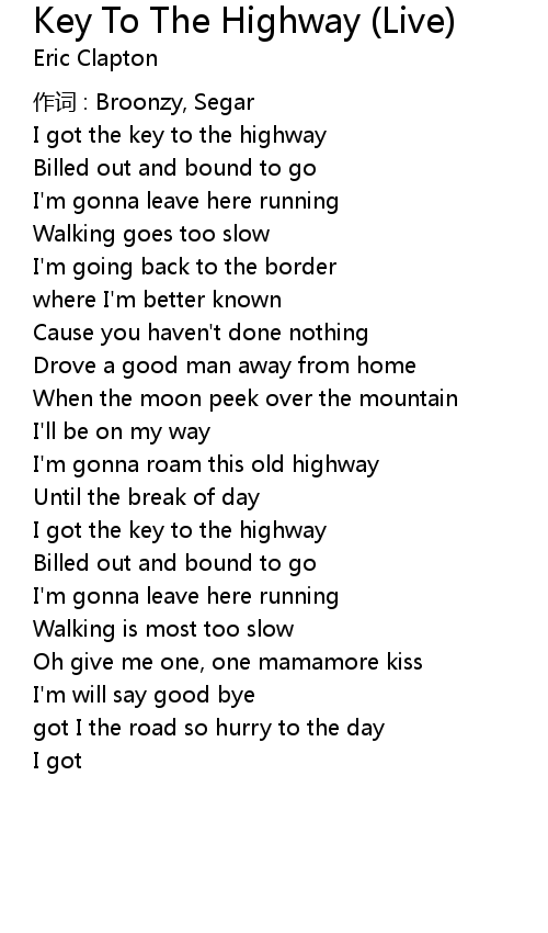 | I got the key to the highway | |