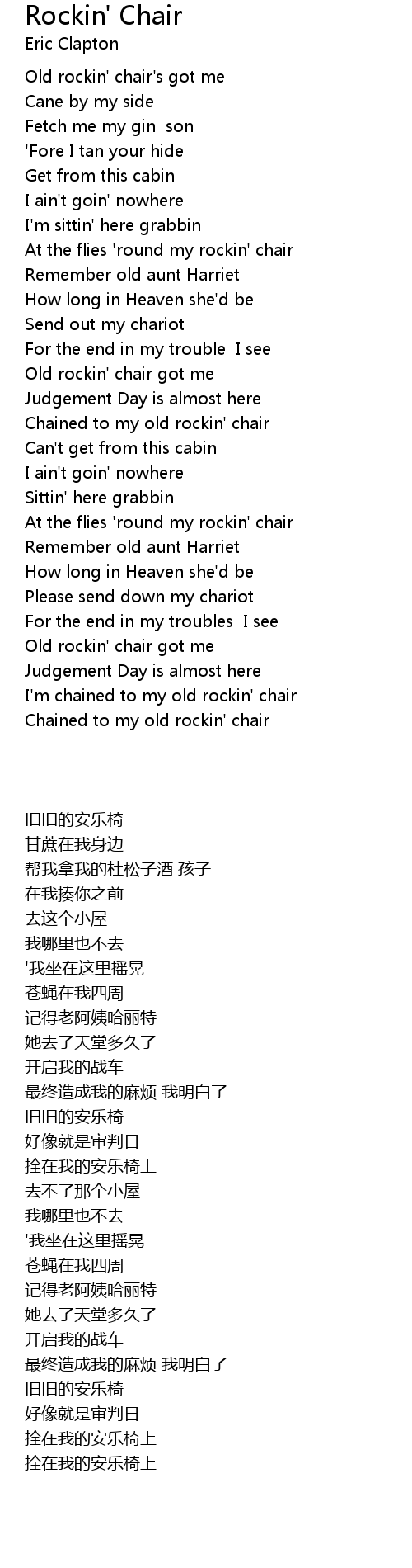 Chained to my old rockin' chair |