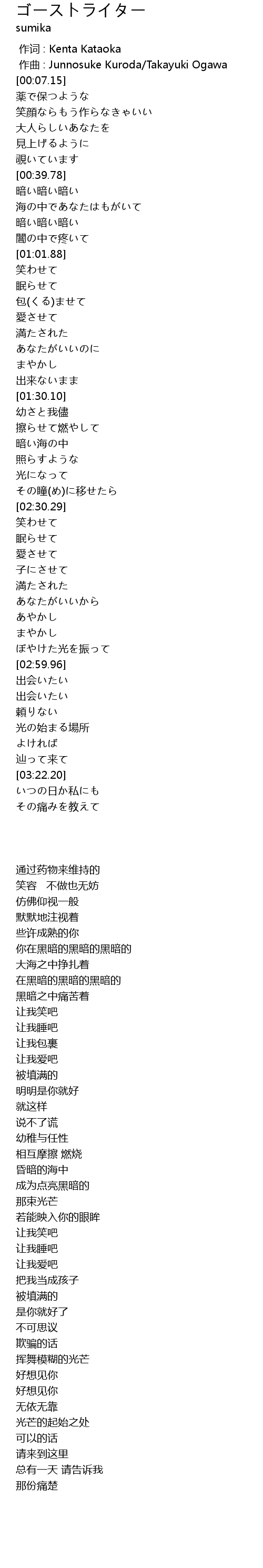 | [00:00.000] | 作词 : Kenta Kataoka |