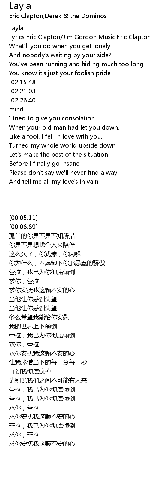 Layla, darling won't you ease my worried mind. |