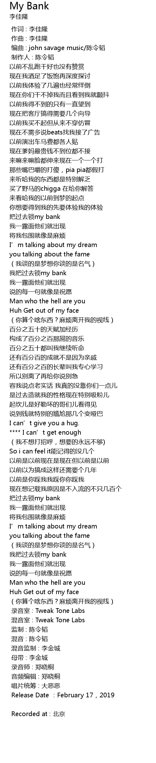 | [02:16.85] | 把过去锁my bank |