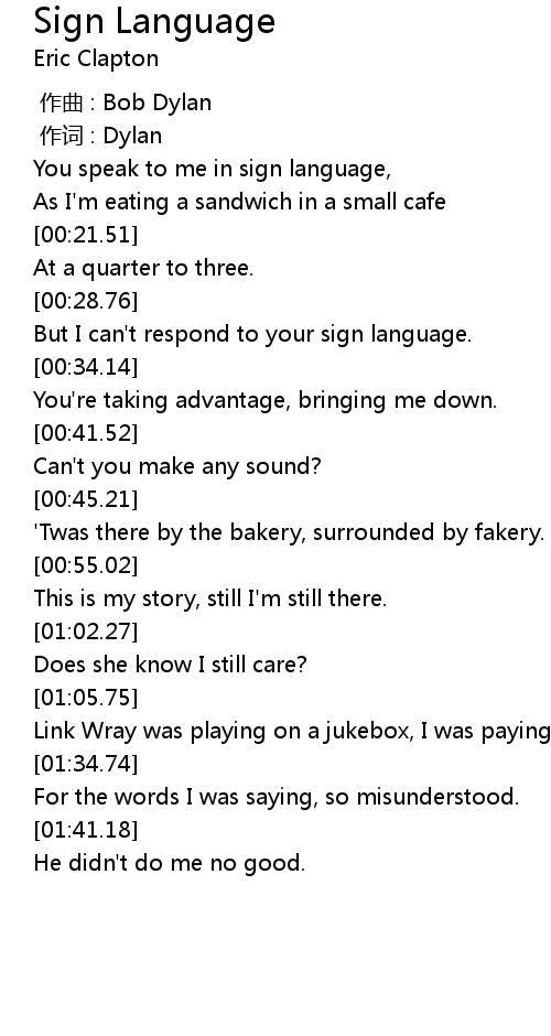 | [00:09.83] | You speak to me in sign language, |