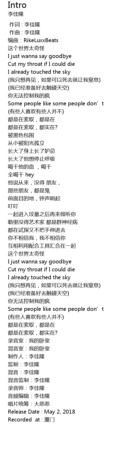 | [02:28.07] | 唱片统筹:大恶恶 |