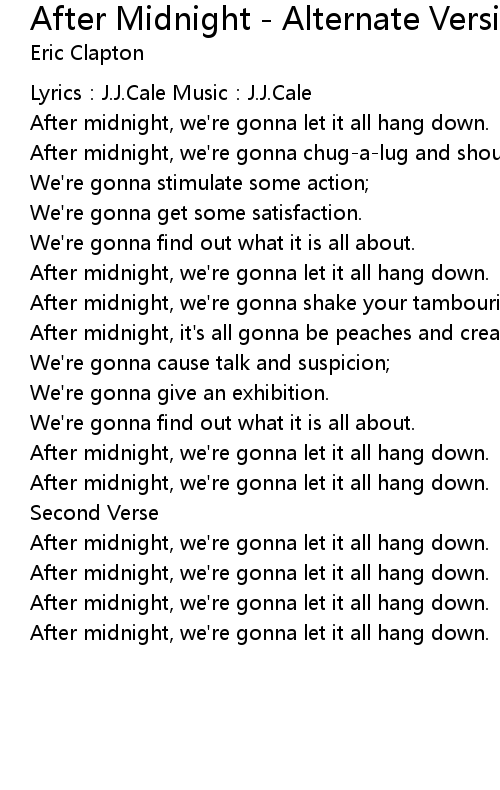 | After midnight, we're gonna chug-a-lug and shout. | |