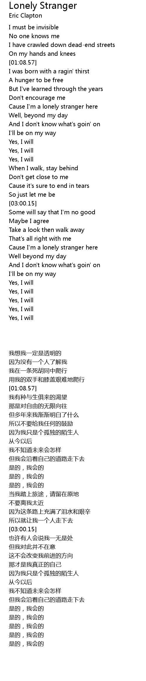 Cause I'm a lonely stranger here |
