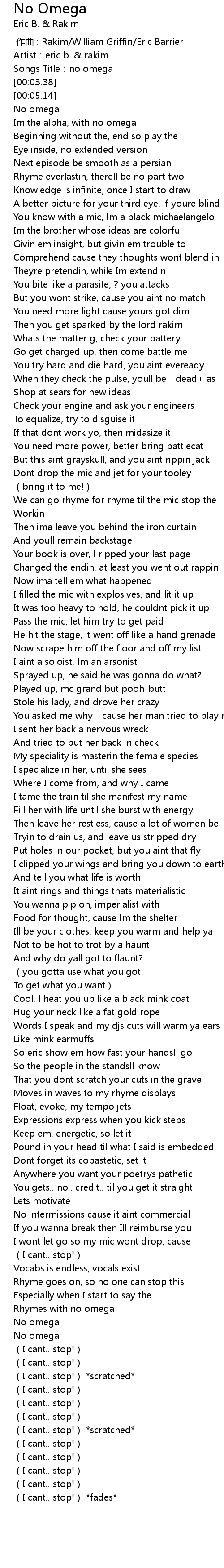 | [03:16.98] | Rhymes with no omega |