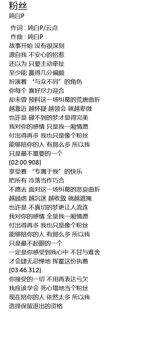 | [03:07.363] | 付出得再多 我也只是像个粉丝 |