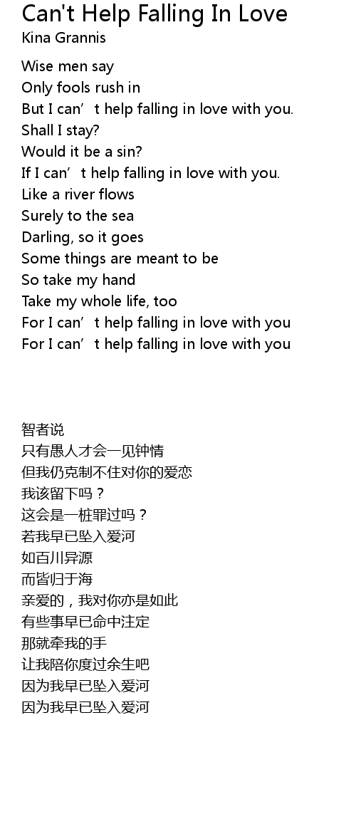 | [01:02] | But I can' t help falling in love with you. |