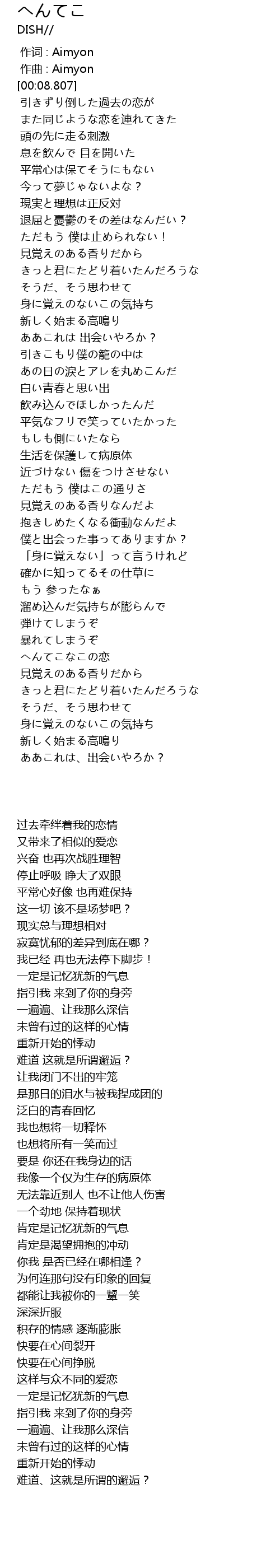 | [00:00.000] | 作词 : Aimyon |