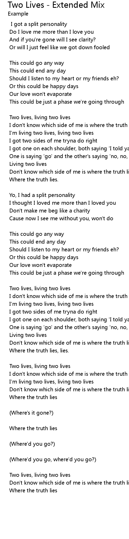 Two Lives - Extended Mix 歌词