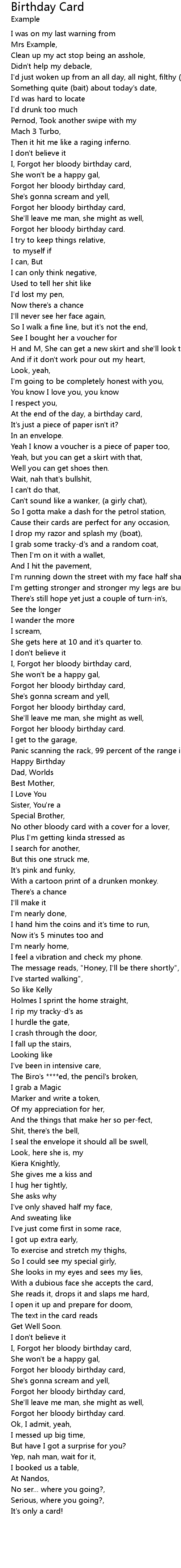 Birthday Card 歌词
