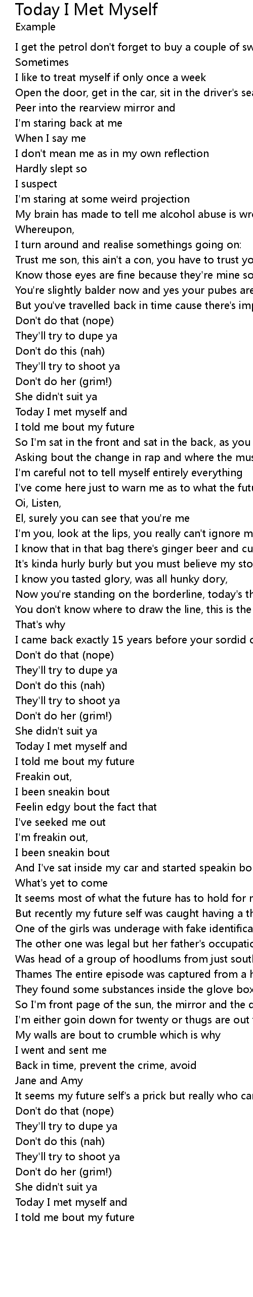 Today I met myself and |