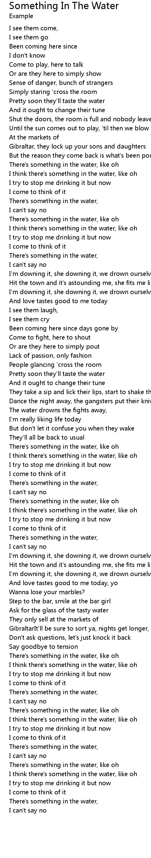 There's something in the water, like oh |