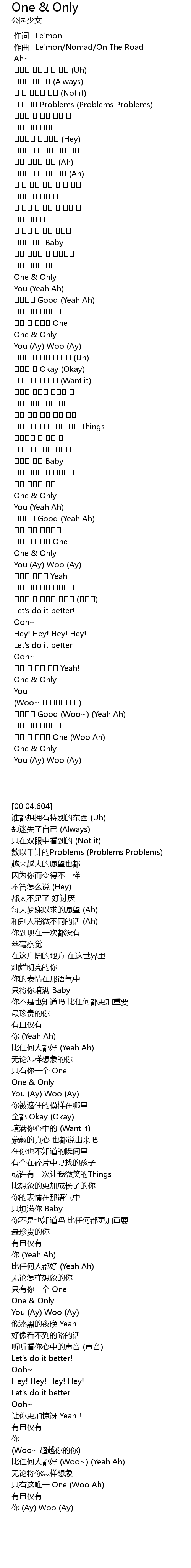 | [02:56.287] | 只有这唯一 One (Woo Ah) |