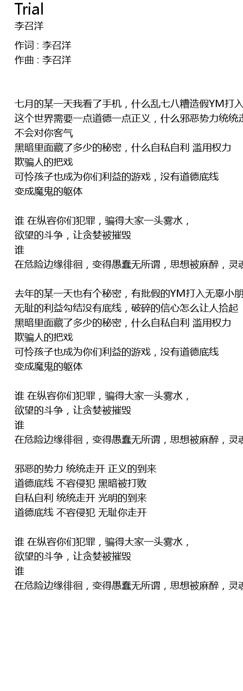 | 作词 : 李召洋 | |
