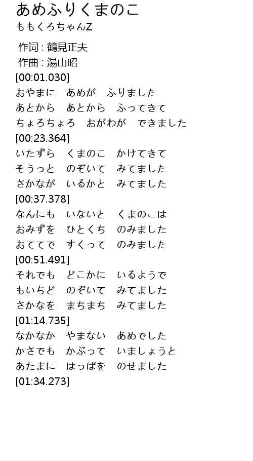 | [00:23.625] | いたずら くまのこ かけてきて |