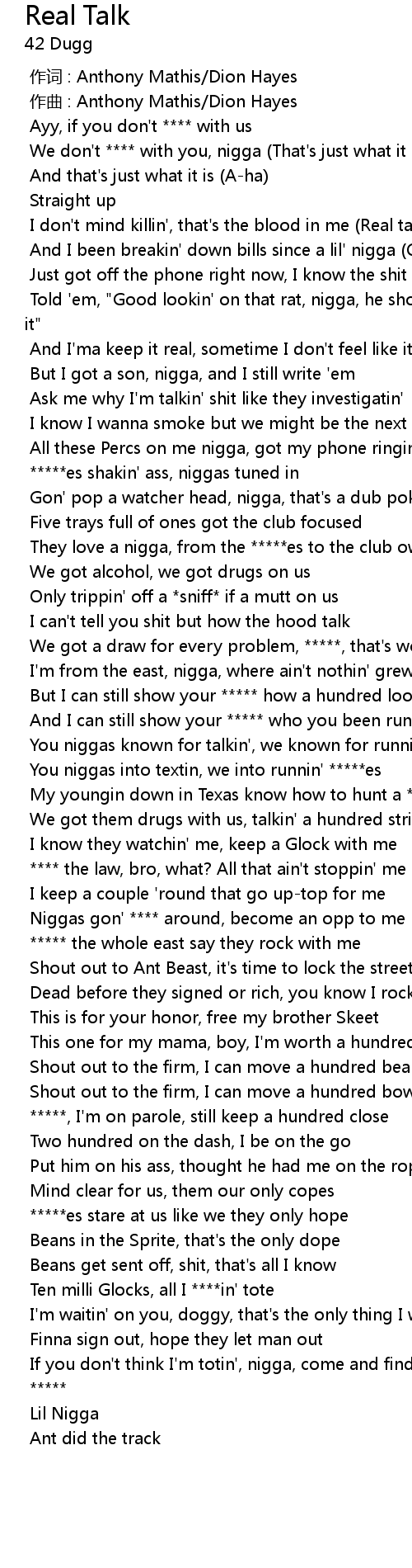 | [00:02.389] | We don't **** with you, nigga (That's just what it is) |