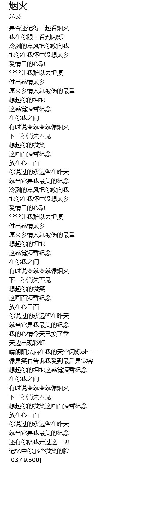 | [03:11.720] | yǒu shí shuō biàn jiù biàn jiù xiàng yān huǒ |