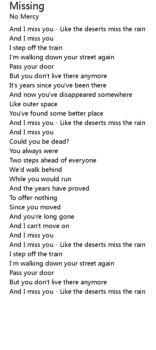 And I miss you - Like the deserts miss the rain |