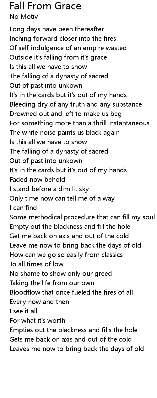 Outside it's falling from it's grace |