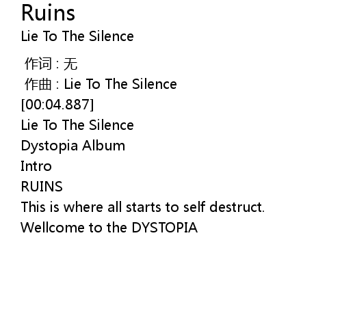 | [00:01.000] | zuo qu : Lie To The Silence |
