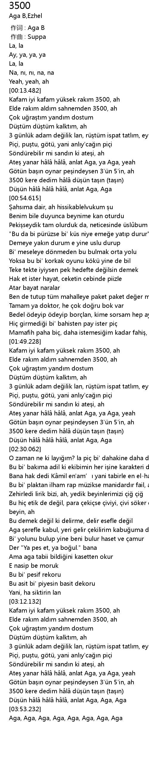 | [00:14.129] | Kafam iyi kafam yü ksek rak m 3500, ah |