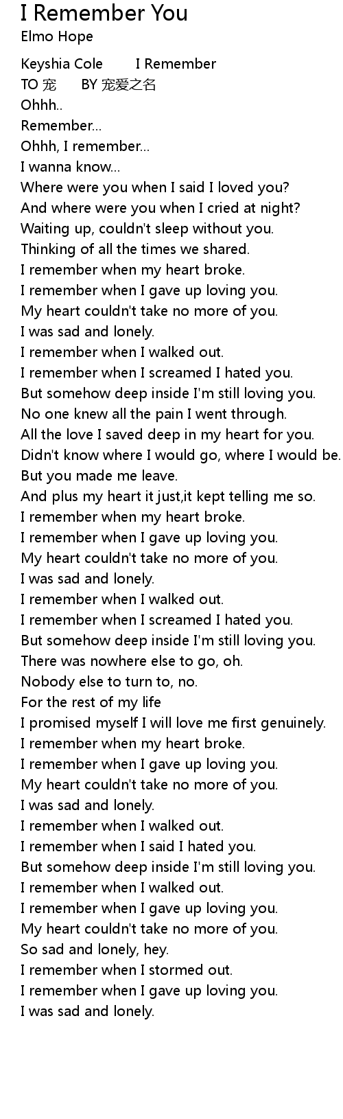 | 歌曲 | I Remember You |