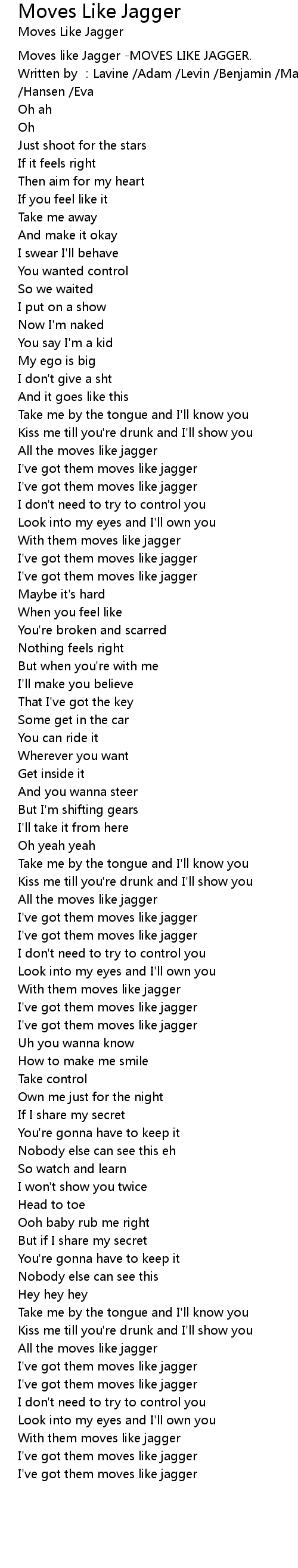 | [00:00.00] | Moves like Jagger -MOVES LIKE JAGGER. |