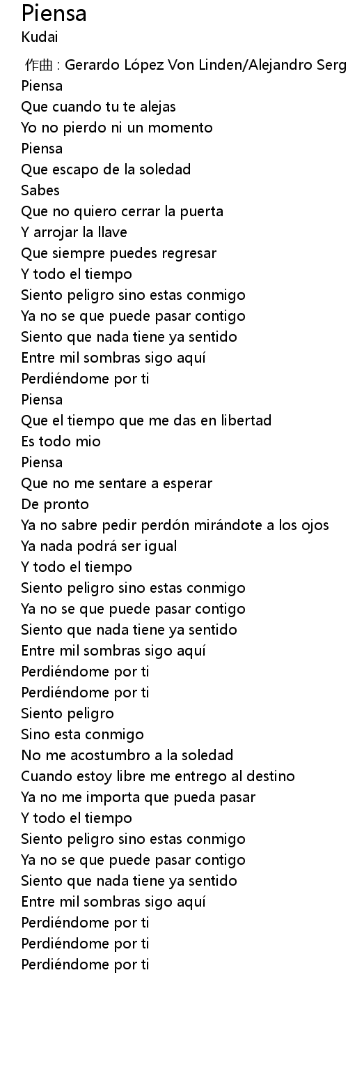 | [00:35.25] | Siento peligro sino estas conmigo |