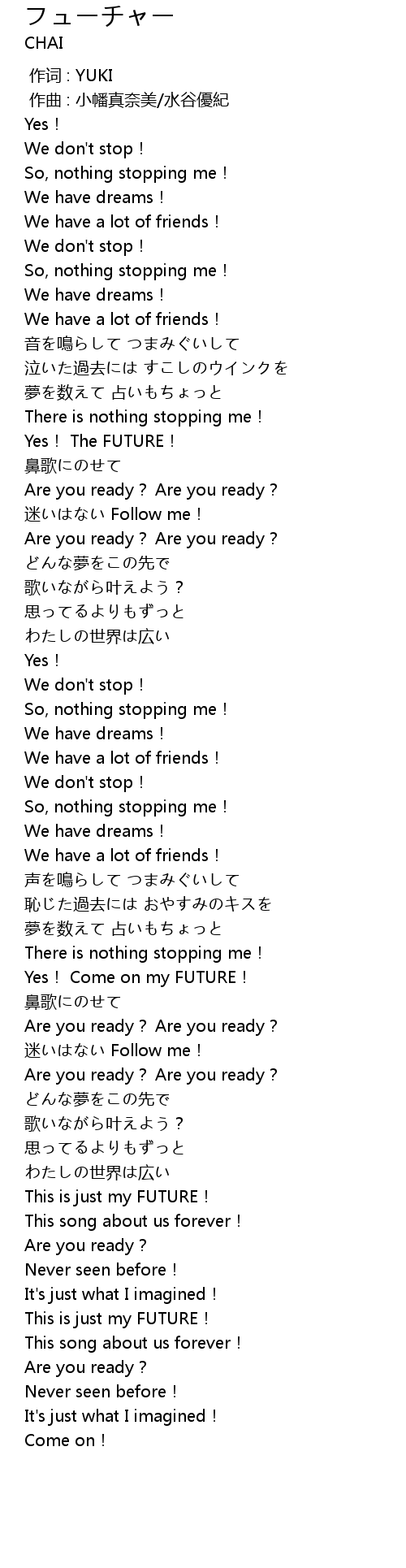 | [02:05.000] | Yes! Come on my FUTURE! |