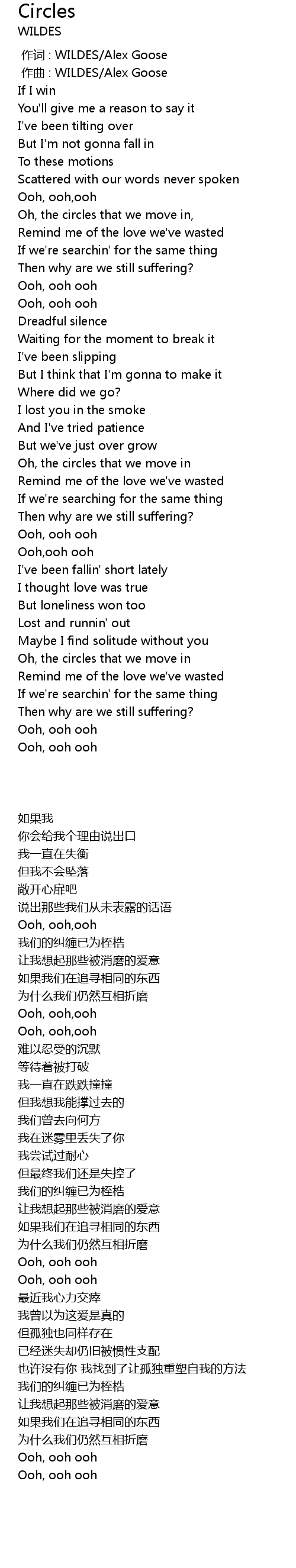 | [00:01.000] | zuo qu : WILDES Alex Goose |