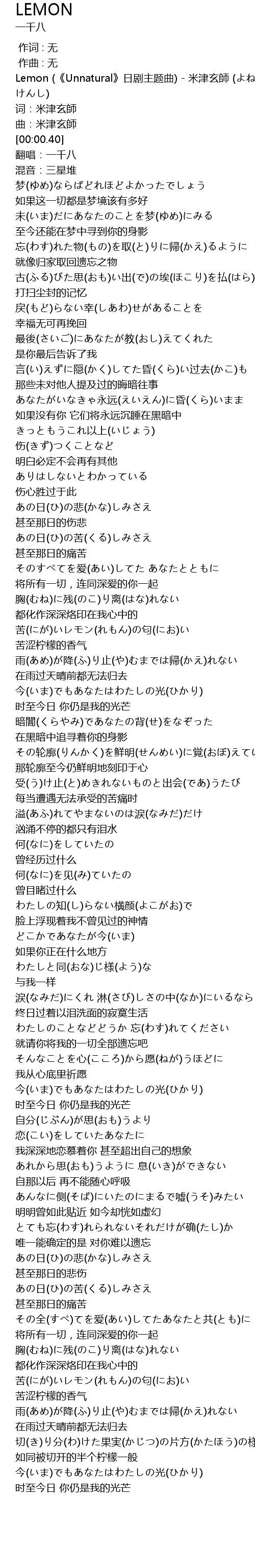 | [00:00.10] | Lemon Unnatural ri ju zhu ti qu mi jin xuan shi |