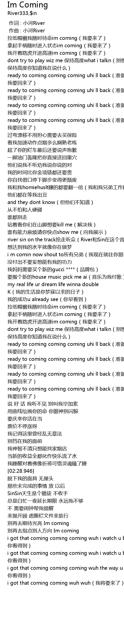 [02:53.937] i got that coming coming coming wuh i watch u back(我将要来了 你看得到)