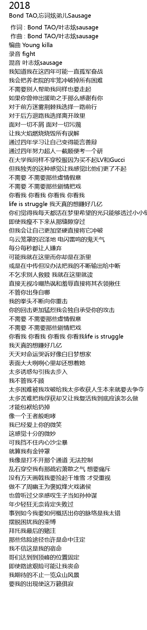 | [01:41.611] | 你看我 你看我 你看我 你看我life is struggle |
