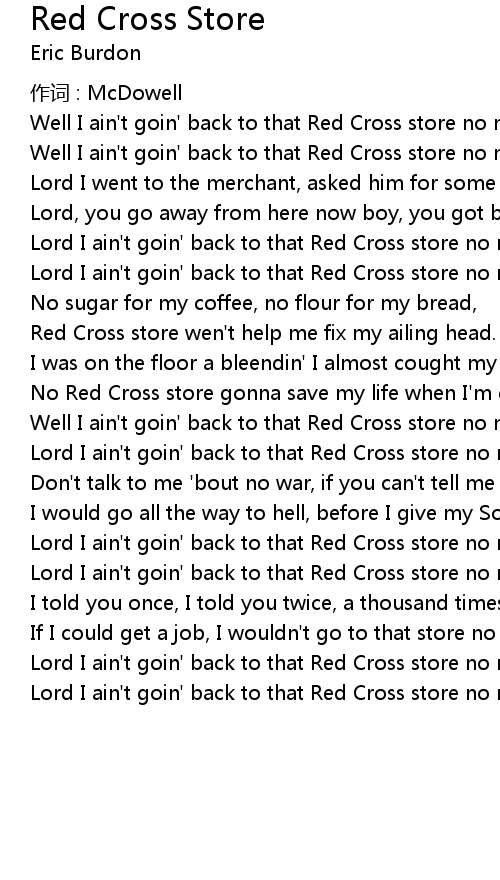 | Well I ain't goin' back to that Red Cross store no more. | |