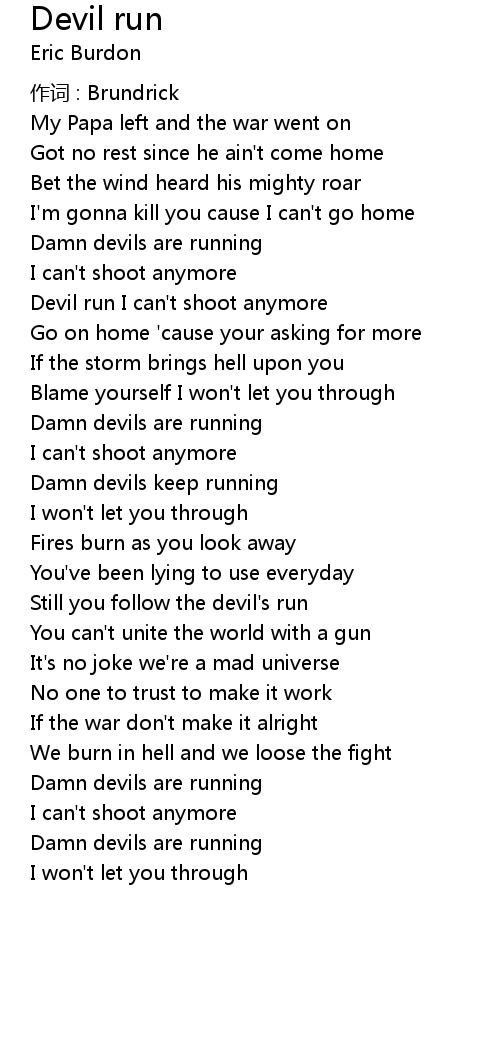 | Still you follow the devil' s run | |