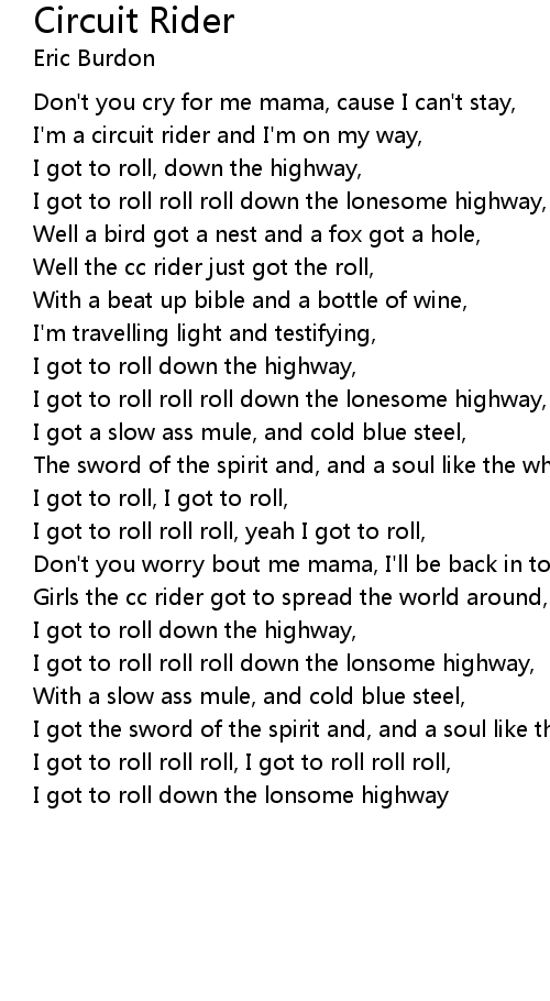 I'm a circuit rider and I'm on my way, |