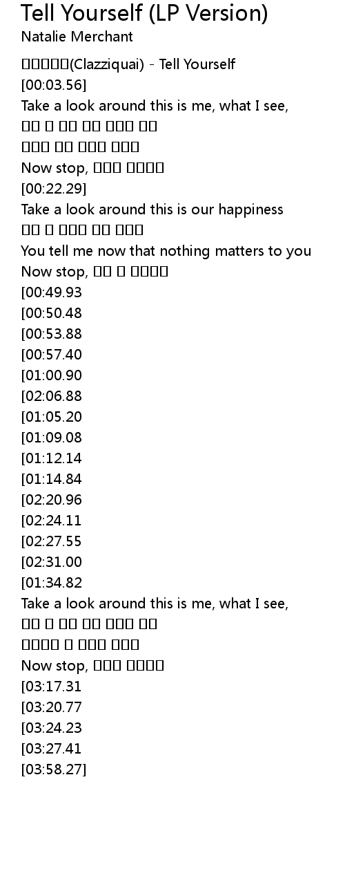 | [03:31.16][03:17.31][03:03.47] | Tell yourself to be myself 예쁘게 |