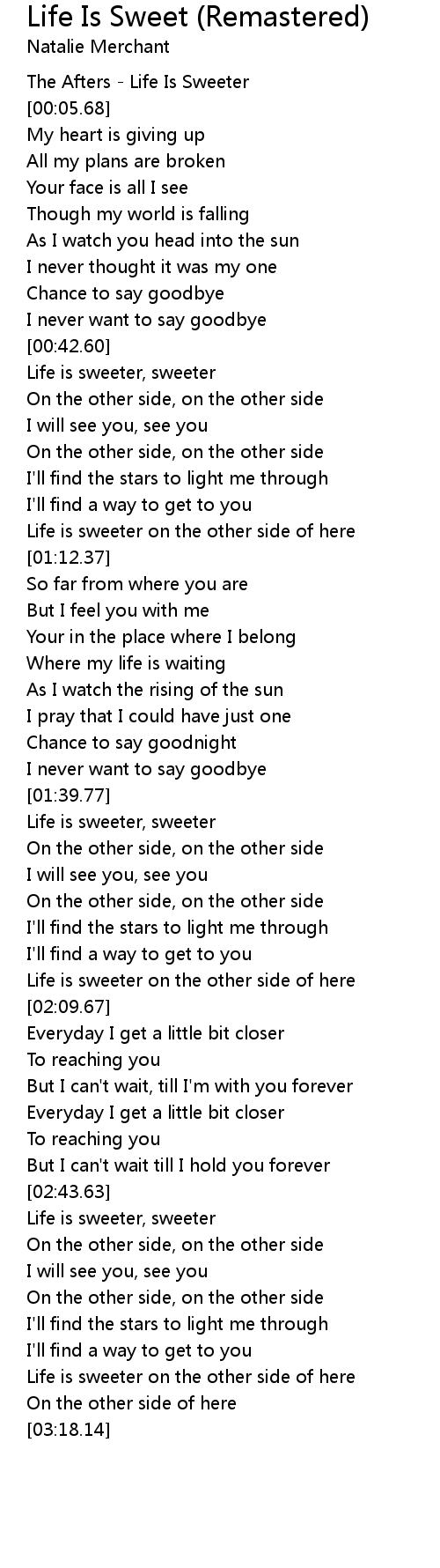[00:43.27] Life is sweeter, sweeter