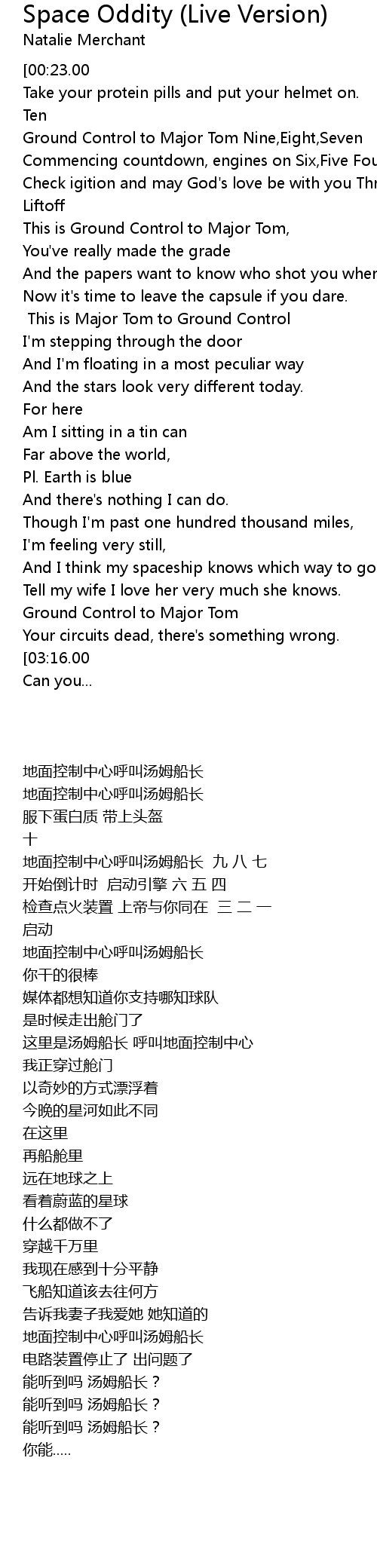 Can you hear me, Major Tom? |