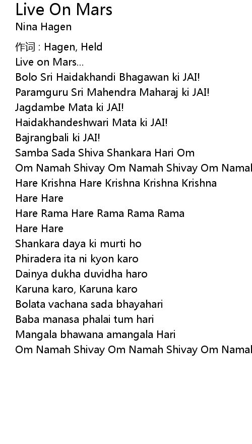 | Om Namah Shivay Om Namah Shivay Om Namah Shivay Om Namah Om (x2) | |
